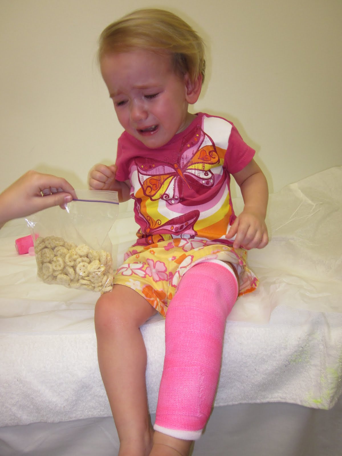 After they were done, she was red faced and hyperventilating slightly. Gave her lots of hugs and tried to calm her down. She kept looking at me, the nurse, other patients, the receptionist, and any other adult for help pointing to her cast and saying so cutely "Off? Off?" Broke my heart but also made me laugh. Poor thing.