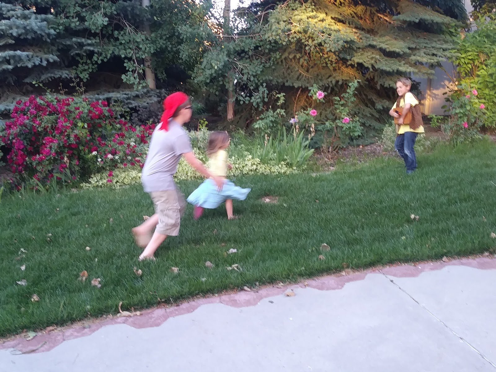 They were running around upstairs, downstairs, inside, outside... lost in game.