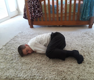 This morning Joseph woke up early to go to the temple and out to breakfast with one of his BFFs Scotty, who is going out of town for a family trip, so this was their last chance to see each other. I'm glad Joseph has had such good friends. He's gone to the temple with friends on Tues, Wed, Thurs, and now today. I'm sure he's got plans to go tomorrow too, cause this kid is intense. He's been busy saying good bye to friends. He came home and crashed for a few hours on my bedroom floor. And I love this picture I got of him - seems like an appropriate bookend photo for the end of his childhood - my 18 year old sleeping in a stink bug pose on my floor, just like my toddlers.
