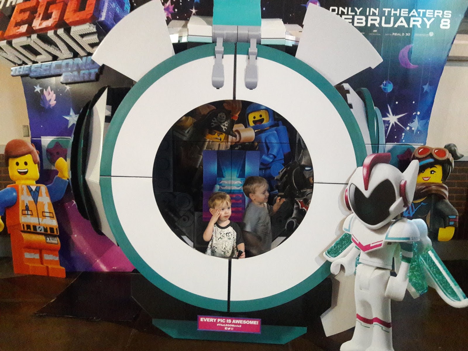Owen and Daniel playing in the Lego Movie 2 Display.