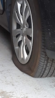 Holy cow! Was it like that the whole time? The car felt fine driving except for when I'd get up to 80 it would shake a little. I felt so grateful that we made it home okay! And I felt protected that we didn't have a blowout on the drive home or get stuck on the side of the freeway. Wow, thank you Heavenly Father! I pulled into the garage, and I hope Ethan and Wes help me change it tomorrow.