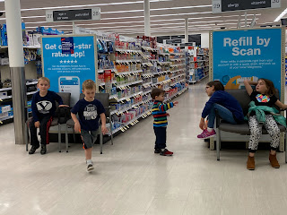 Last night, as he and I were going over the schedule today, I let him know I had a Relief Society Book review activity, not that it would impact him since he'd be gone, and then he let me know that he had scheduled covid shots for our 5-12 year old kids at 7:40. The Book Review was at 7. So, I thought about rescheduling the appointments, but instead contacted my neighbor in charge of the review and asked if I could go first cause I had to leave early. It would have been nice to stay, but oh well. So I shared my books - I ended up choosing three which are all about the similar topic of mind work and getting our thinking right: Through His Eyes by President Hicklely's daughter Virginia, which was the first book that introduced this subject to me. Pretty simple and basic approach, and I realized years later that "Hey, that is basically life coaching!" Next book is Ann Voskamp's book "One Thousand Gifts" - a Christian perspective on how to be grateful for all that God and life gives us, the good and the bad. I think Ann writes so beautifully too. And then the current book I'm reading, A Fearless Mind, by Craig Manning. SUPER cool book, talking about mindset from an more academic point of view with lots of examples from his experience as a coach and Sports Psycologist. I'll blog about that book more when I finish it. I have a few more pages. Anyway, so yeah, took Sophi, Natalie, Owen, Daniel and Peter with me over to the church. They played with toys in the nursery. The activity started like 15 minutes late. After a few announcements and prayer, I quickly and excitedly shared my thoughts on examining our thinking and why those books are awesome approaches to learning about it, then we cleaned up the toys and left for Walgreens down the street.