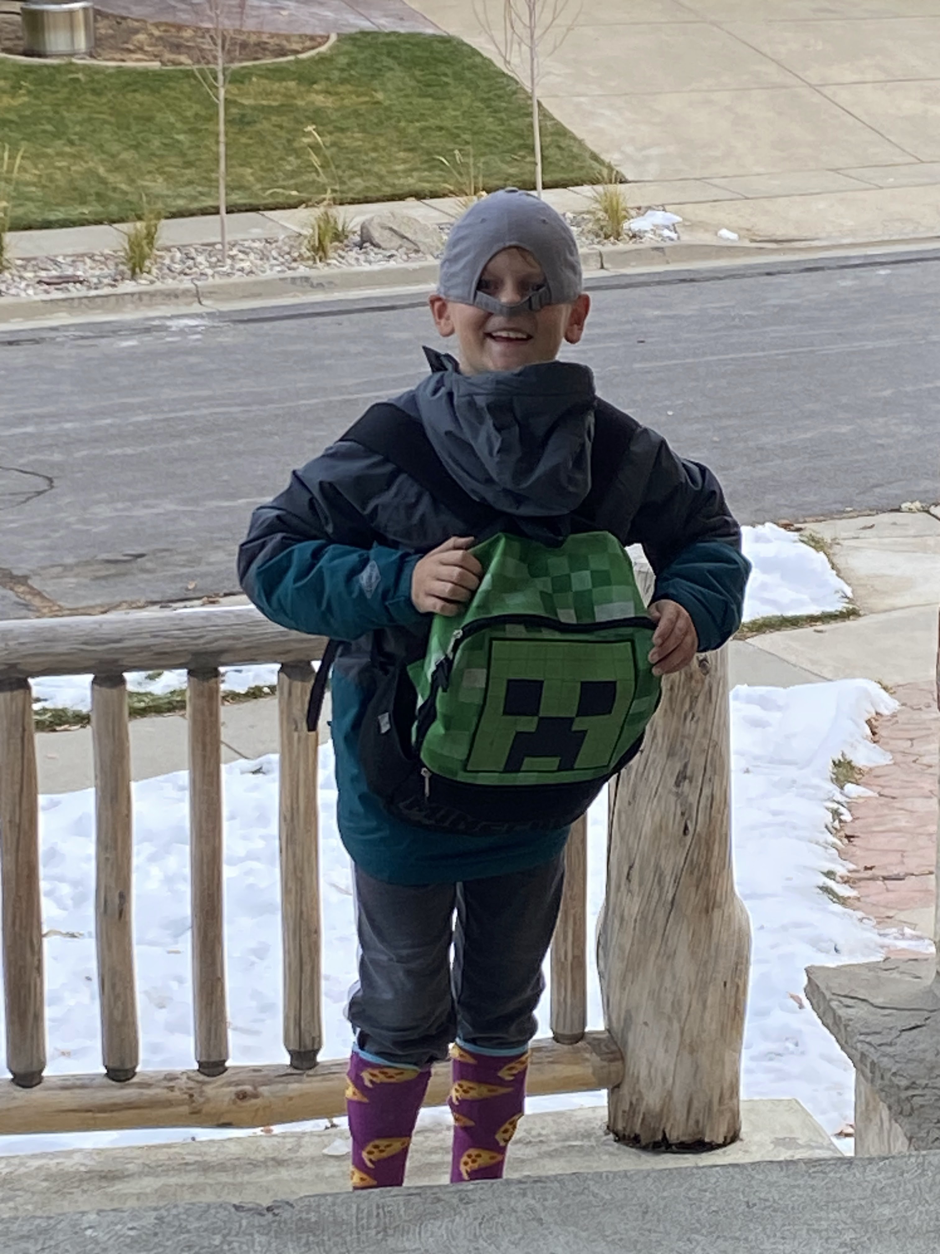 After Ariel was done, she wanted me to do Eric, but I was done, so I distracted her with something else. For Owen, Daniel and Peter, today was backwards day. Peter tried it, but didn't like how his clothes fit that way. Owen was the only one who showed his school spirit.