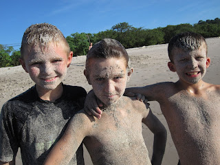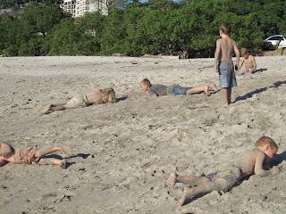 Today was our last Friday here in Costa Rica. Last I talked to the RMs on Tuesday, we decided to get together again this week and have a girls night out for the Moms. We thought it would be best to do it at our place, and if they are gonna drive all the way out here, might as well go to a beach too, no? So it was arranged. Playa Flamingo, and let's get all our American friends - the Martinsens and the Heathman's to come too. So it was. We got there around 1 and stayed until sunset (5:30). With our big group it looked/sounded like Raging Waters - water splashing, kids squeeling. It was great. Couldn't have asked for a better beach day, but we might still try to go one more time before we fly out. Flamingo is an awesome beach, and today it was a BEAUTIFUL DAY!!!! It was sunny! There were hardly any clouds in the sky.