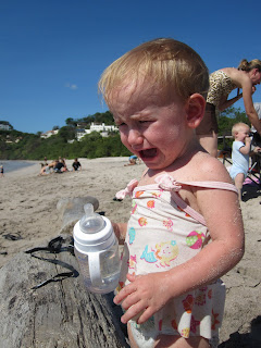 Rolling down the beach slope - making sure to get that sand everywhere!