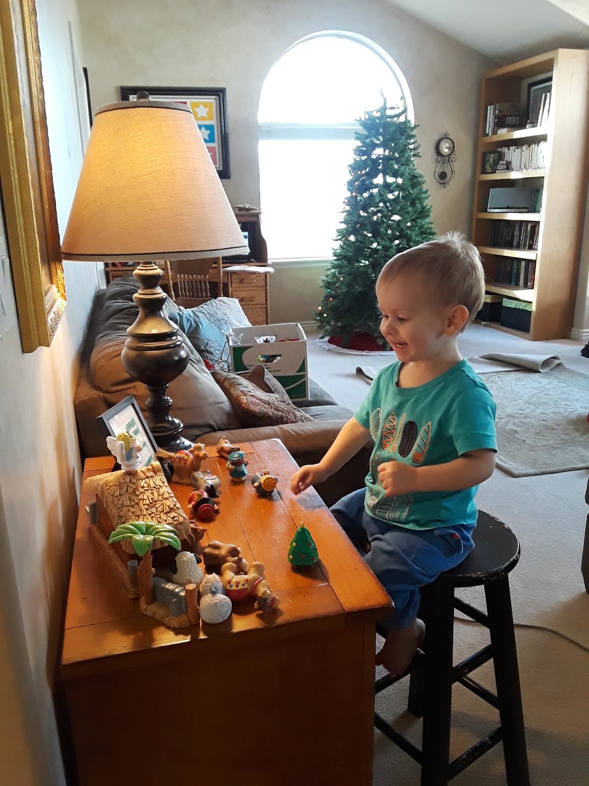 Cute little guy - Daniel playing with the manger scene.