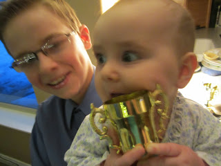 ...and last but not least, Natalie... Ethan held her as we gave her her trophy, she grabbed it with both hands, eyes wide with amazement! And proceeded to eat it...