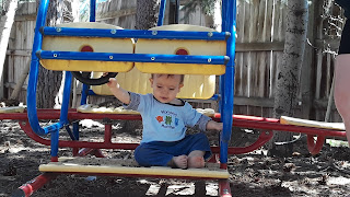Later this evening, Peter was playing with the ball with Natalie - she was making faces at him through the netting and he did his obligatory fake laugh for her.