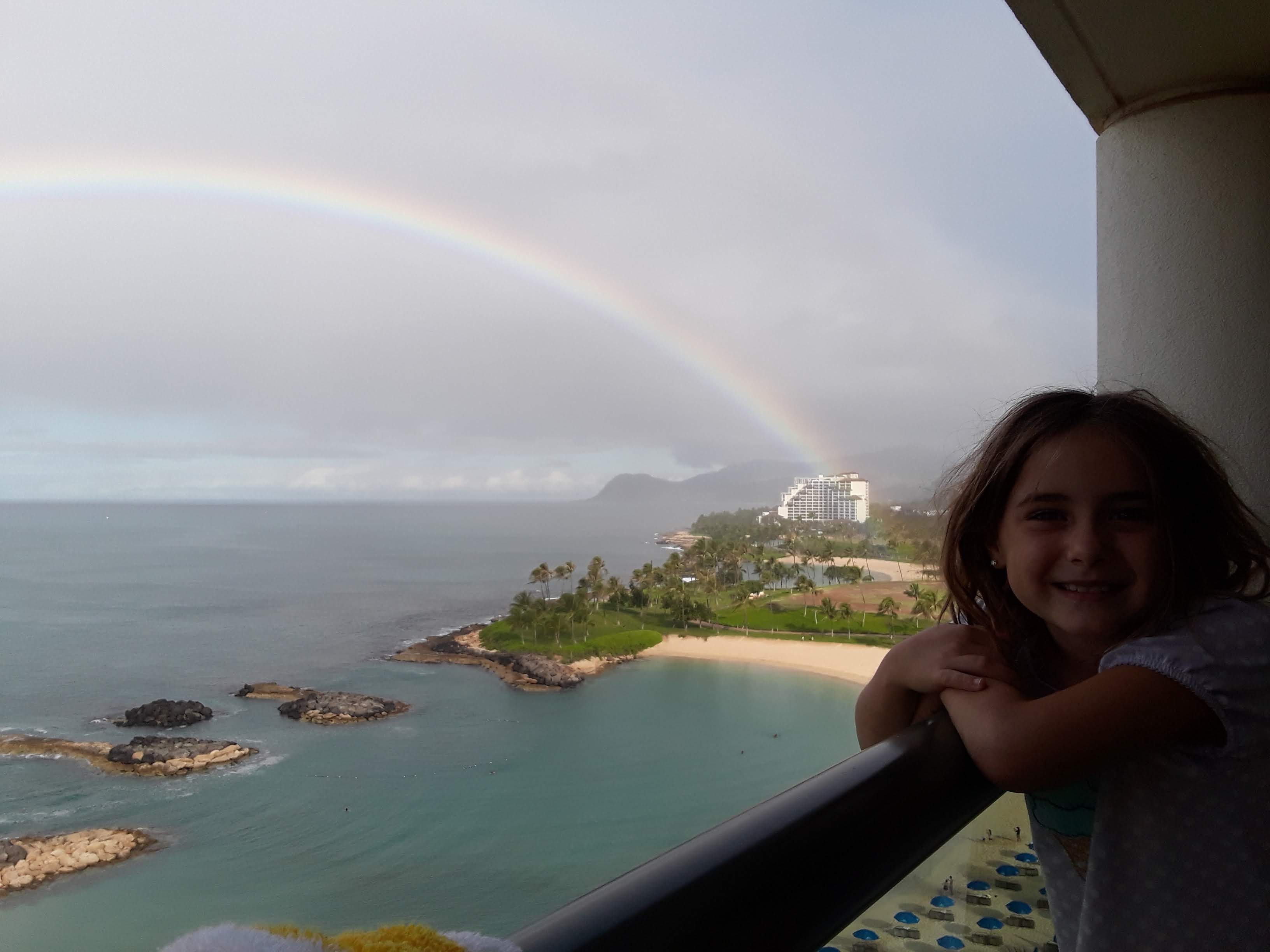 There was another rainbow this morning! Natalie wanted a picture with it -