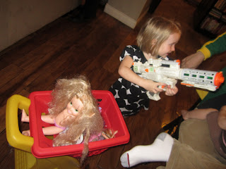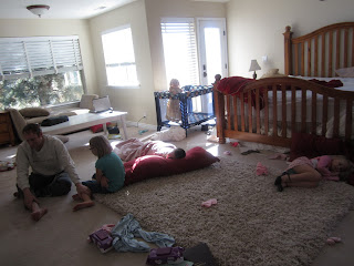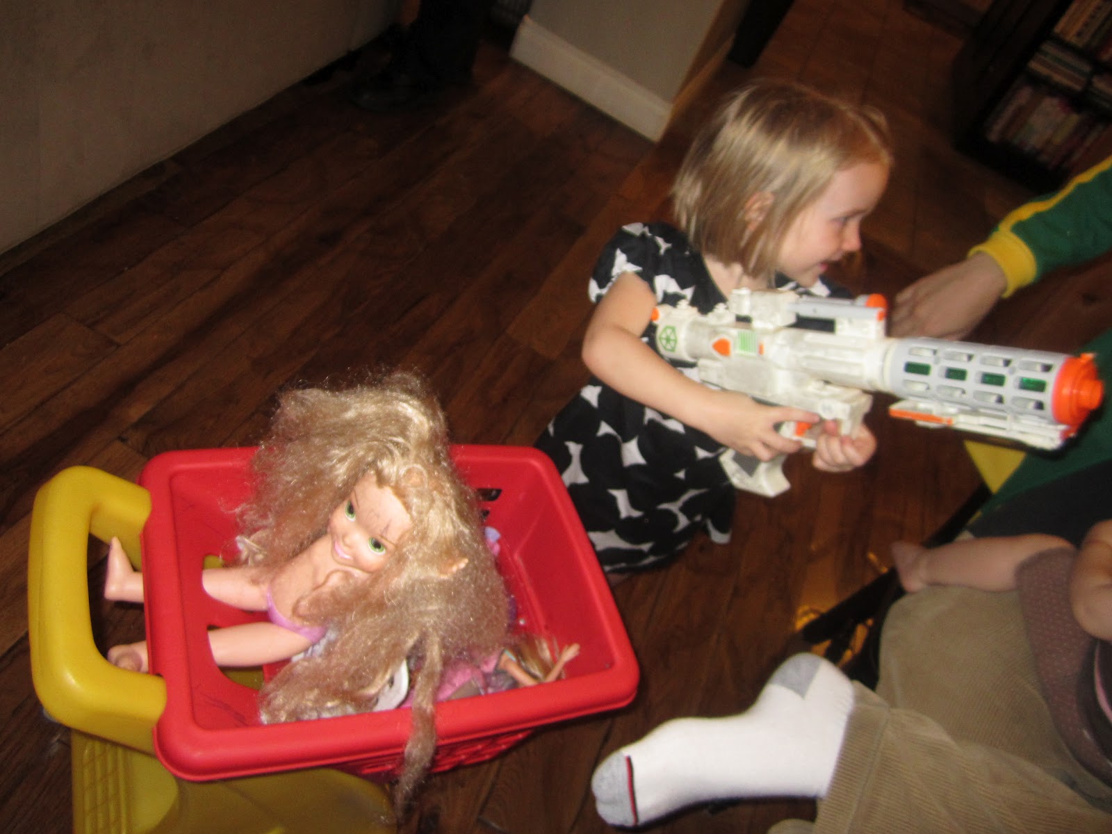Our visitors, Angela and her girls, have been angels in how much they've been cleaning this house, which gives me a grateful/guilty feeling... grateful for the help, Lord knows I need it, but guilty/embarrassed that we Wrides can't keep on top of it and I'm going to feel like a loser tomorrow when they clean it all again. Our current goal is not to live like pigs. So yeah, going to try to thin out the thick of all our toys and clothes and stuff around here again.