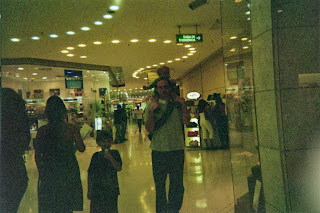 Then we went to visit the family that Corey stayed with last time he was in Rio, The Morais family. They were very nice. Joe was quiet and shy while Corey and I visited. They had their little one and a half year old granddaughter there. Wesley and her fought over some toy balls, later they reconciled when she gave him a tender kiss on the lips, and Wesley was stiff a a board, it was so funny to see the expression on his face! Way cute. We left and walked to a mall close to their house - we took the escalator up to the 8th floor (everything is vertical here) where we looked out over the ocean and the Pao de Acucar.