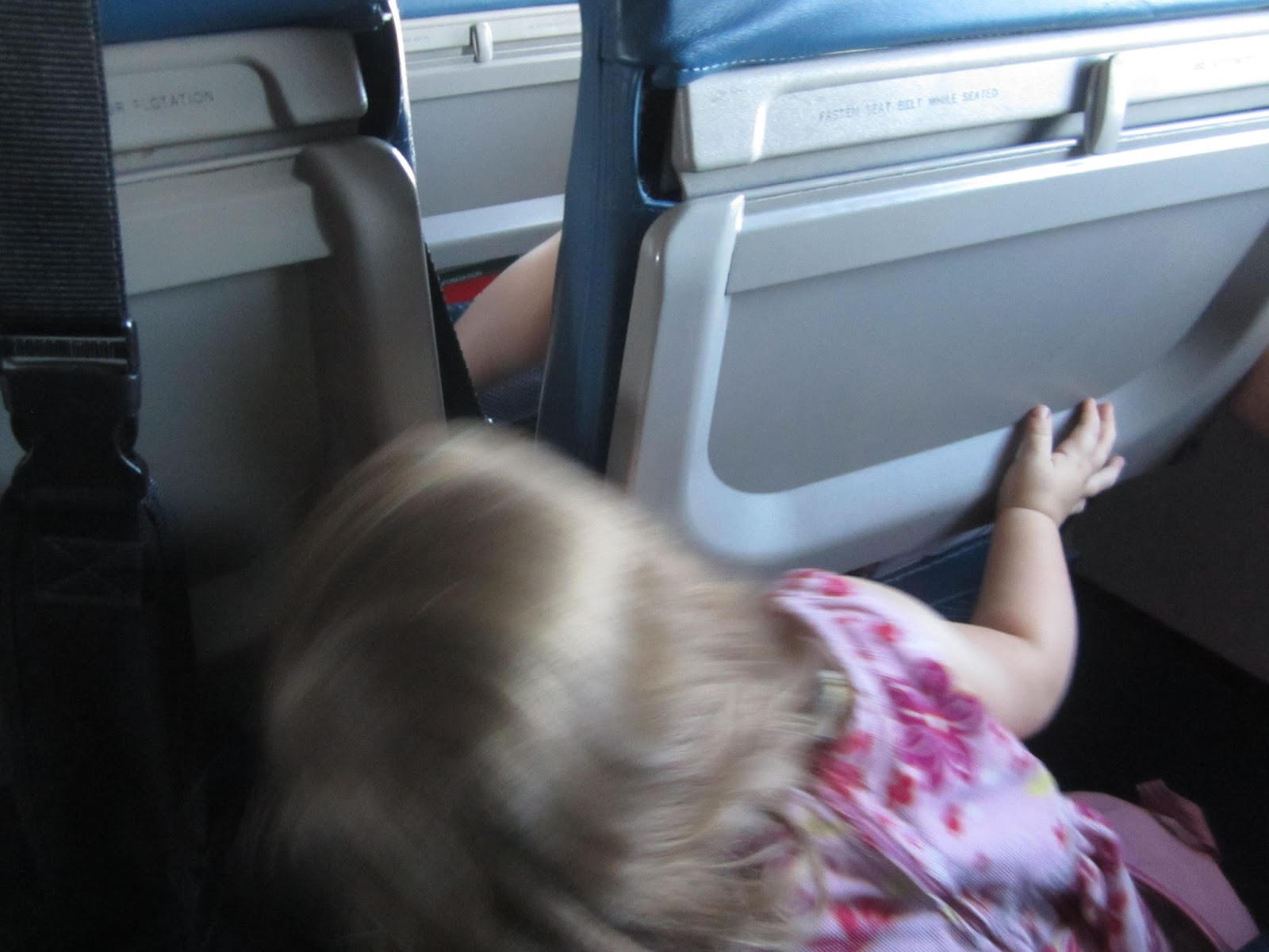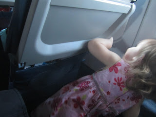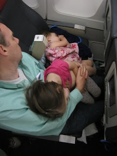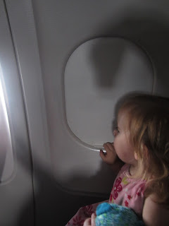 The delay turned out to be just 50 minutes, not 2 hours, so that was good. We were on the plane at 6 and soon in the air. Natalie was once again full of high energy. It was a long 4 1/2 hours...