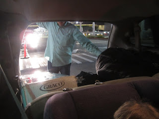On Wednesday night, our friend Zeb's flight left first around 8, so Corey took him to the airport around 5 and took our luggage with hopes that he'd be able to check it in early. They wouldn't let him, so a friend stayed there and watched it while he came back to pick all of us up. We left around 8. First task - return the cars.
