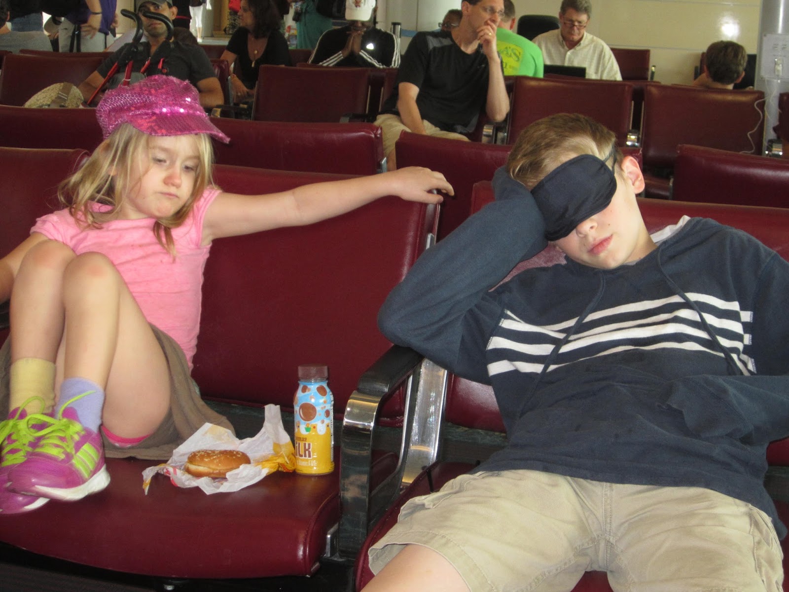 Unfortunately it said it was delayed for 2 hours. Doh. Wish we hadn't checked out of the hotel yet, but we're not going through security again. So time to sit and wait kiddos.