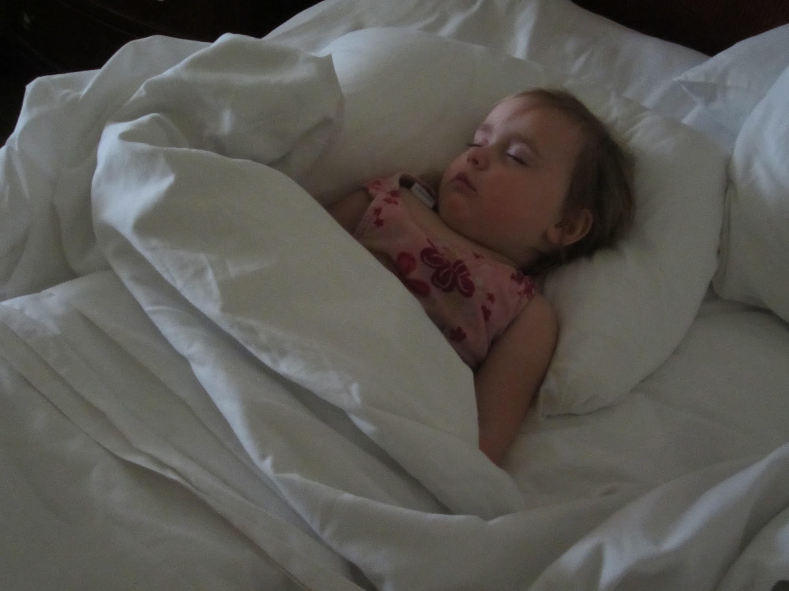 Corey got two pizzas for the kids and they watched tv and Corey and I, well we got to go lay down and sleep!! This was the best idea ever! Natalie didn't eat any pizza, she was too cranky and tired. I went and got her from the kids room and she fell asleep right away.The kids were thirsty - and were happy when I reminded them that we were in the US now, and you can drink water from the tap here! Drink up!!