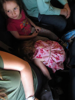 She was just constantly moving - She kicked me out of my chair (wanted equal treatment) so luckily Sophi was willing to sit on Corey's lap and I scooted over by him. Natalie wanted the window seat (open - close - open - close...)