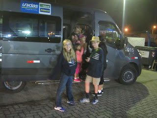 I think all the kids slept pretty well, although Ethan told me later how terrible it was cause he asked for a drink of Guarana but they gave him CocaCola, and then he fell asleep and it spilled all over his shorts and soaked his socks, so he had a miserable night cause he felt sticky and wet. I think he had it better than Corey or I though. I knew it would be bad, so I wasn't surprised, but boy, my ankles got so swollen. I think they're gonna need a few days of elevation to recover. And as for Corey, he saved my life, cause Natalie had a little bit of Coke for dinner when we were at Angela and Felipe's house... and that might not have been a good idea, cause she was seriously awake and full of energy until 3 a.m. Maybe it was the little power nap she had in the drive to the airport, I don't know, but she was on one. There was like no leg room and I would have died if I had to hold her still during the whole night with my pregnant self. Corey saved my life by taking both her and Sophia for our un-restful night's sleep on the plane. Sophi slept on the floor when Natalie was on her high energy kick climbing all over the chair. She finally gave in, but we were going to be getting up early - we landed at 7:30 Florida time / 8:30 Brazil time. That's just five and a half hours of sleep for Natalie - and that's not good.
